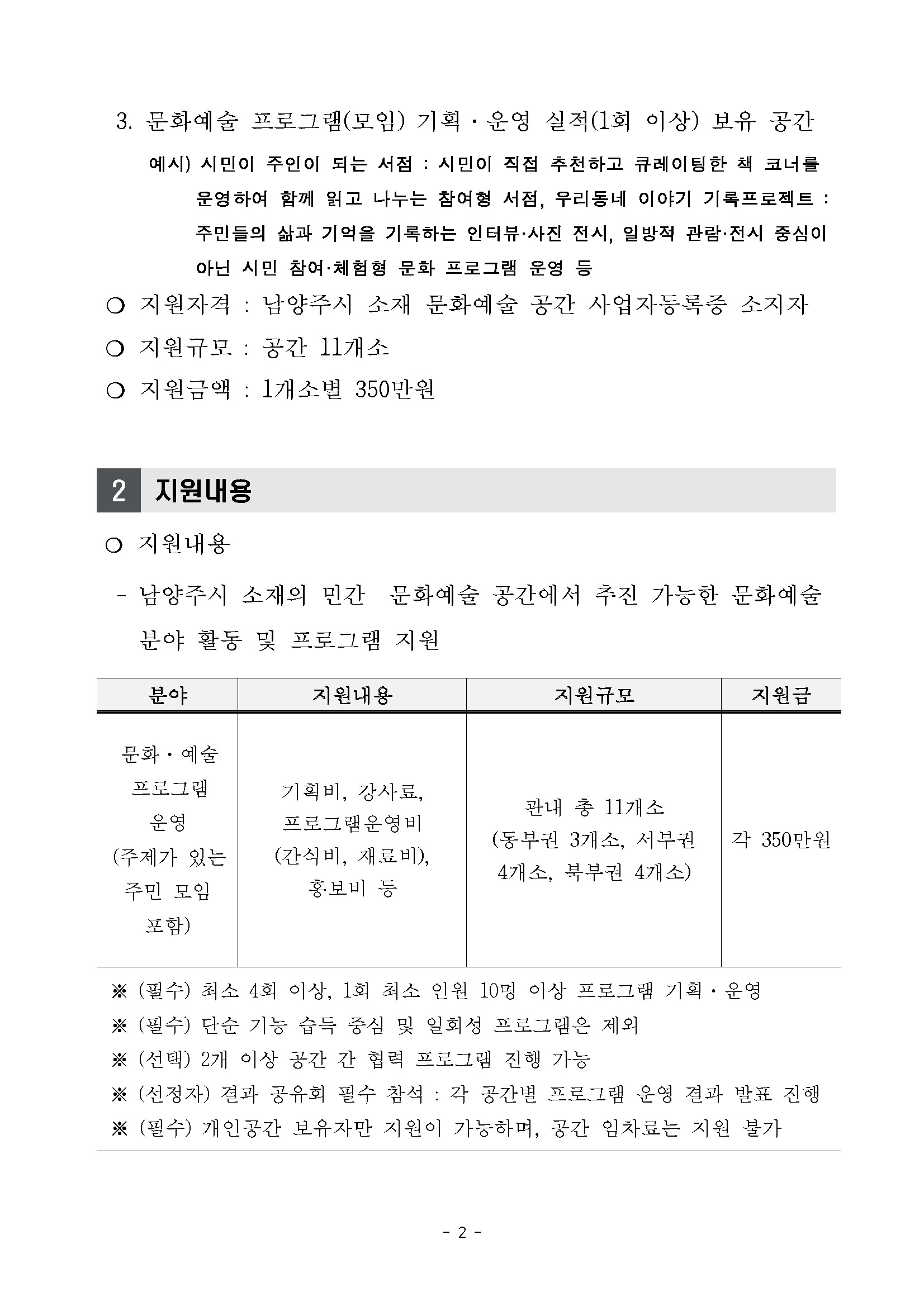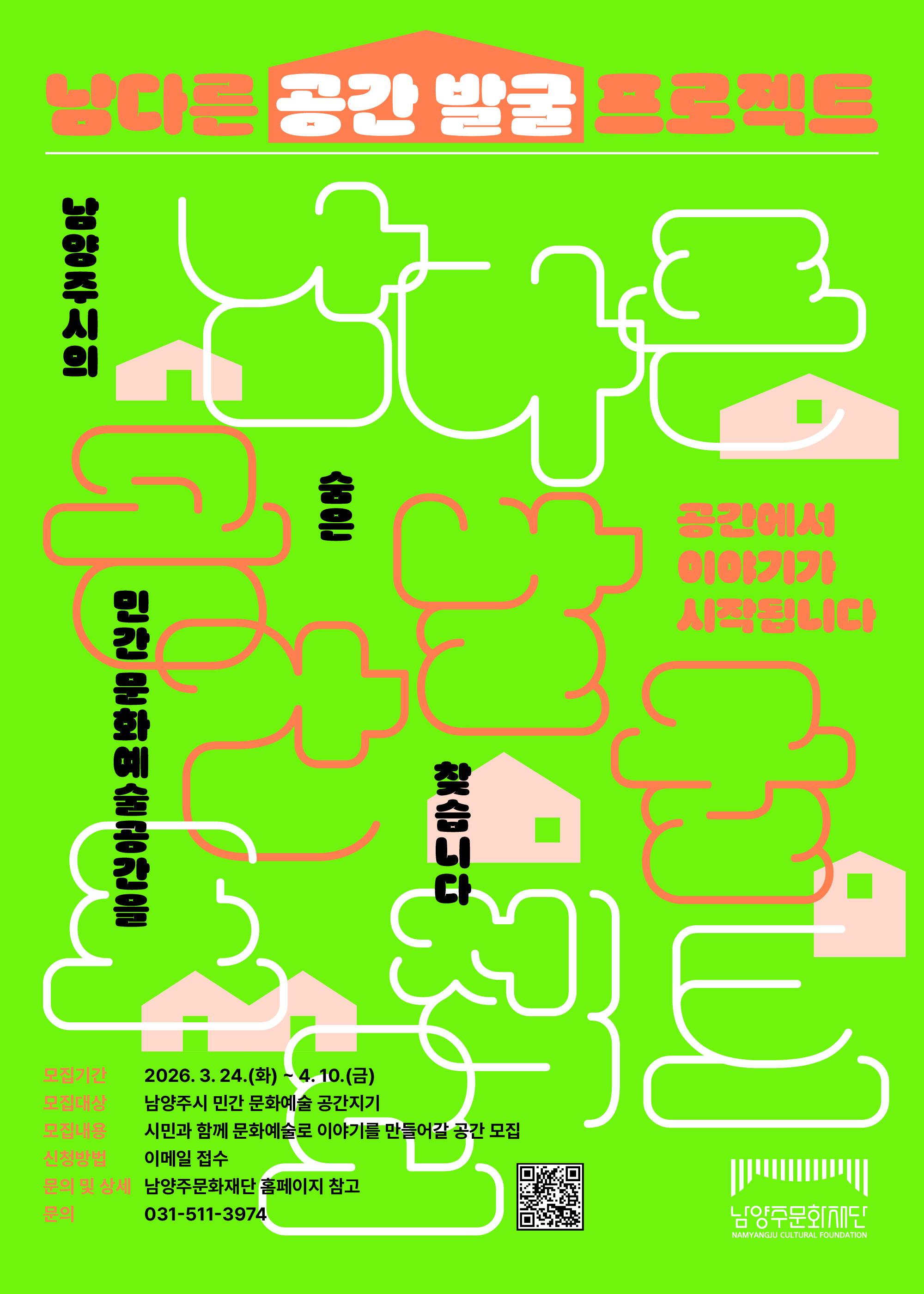 [남양주문화재단] 생활문화예술 거점 공간 네트워크 구축 <남(양주)다른 공간 발굴 프로젝트> 지원사업 공고