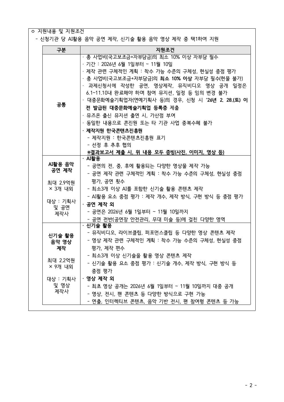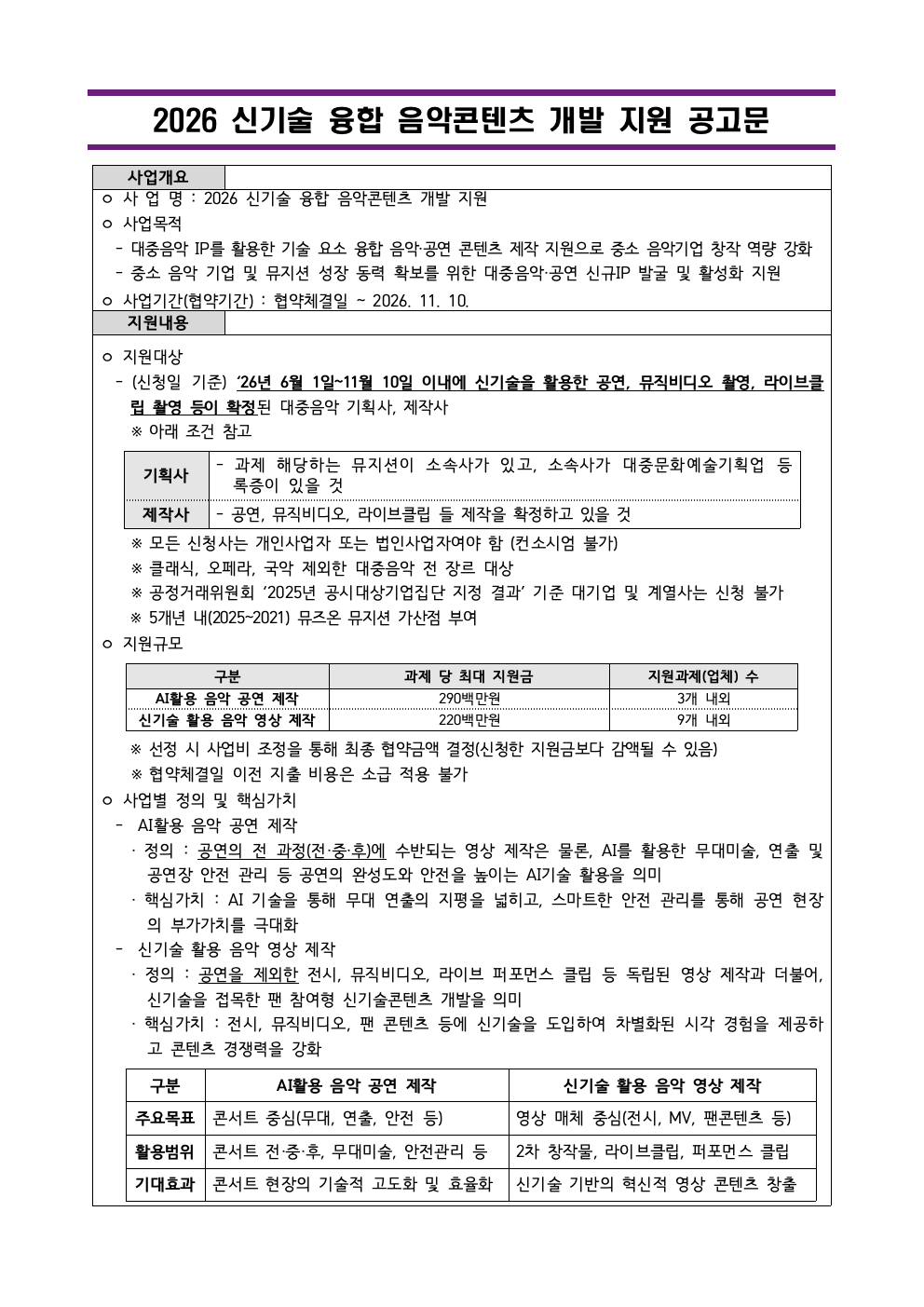 [한국콘텐츠진흥원] 2026년 신기술 융합 음악콘텐츠 개발 지원