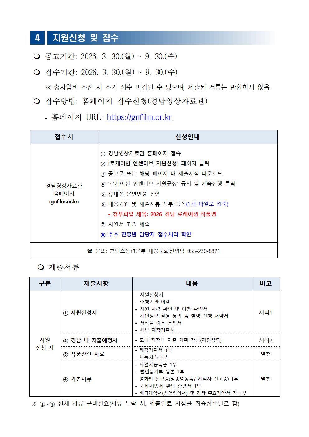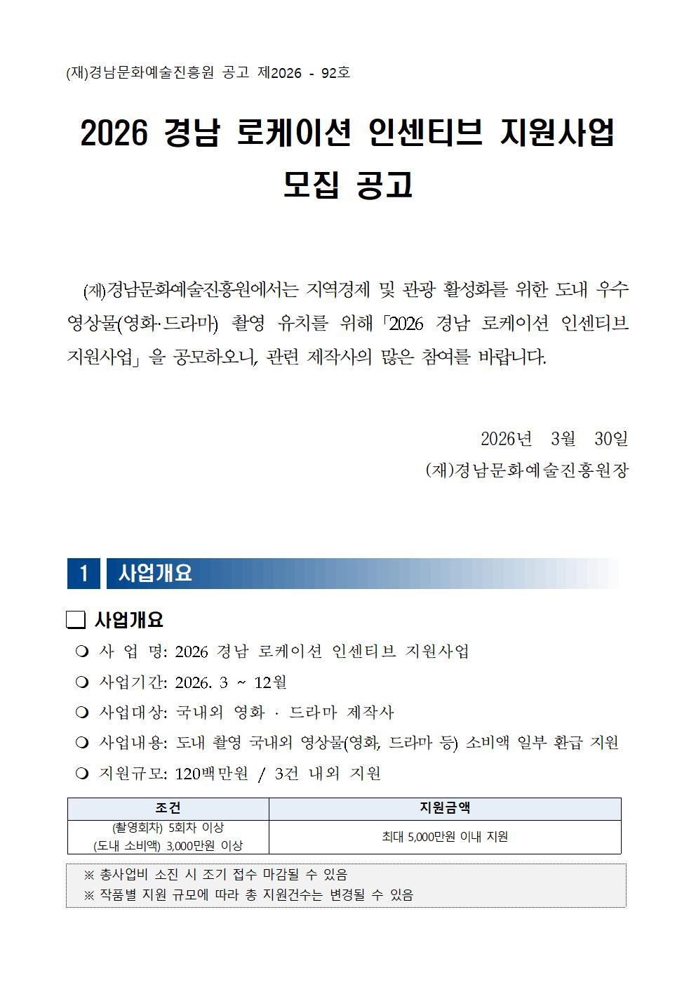 [경남문화예술진흥원] 2026 경남 로케이션 인센티브 지원사업 모집 공고