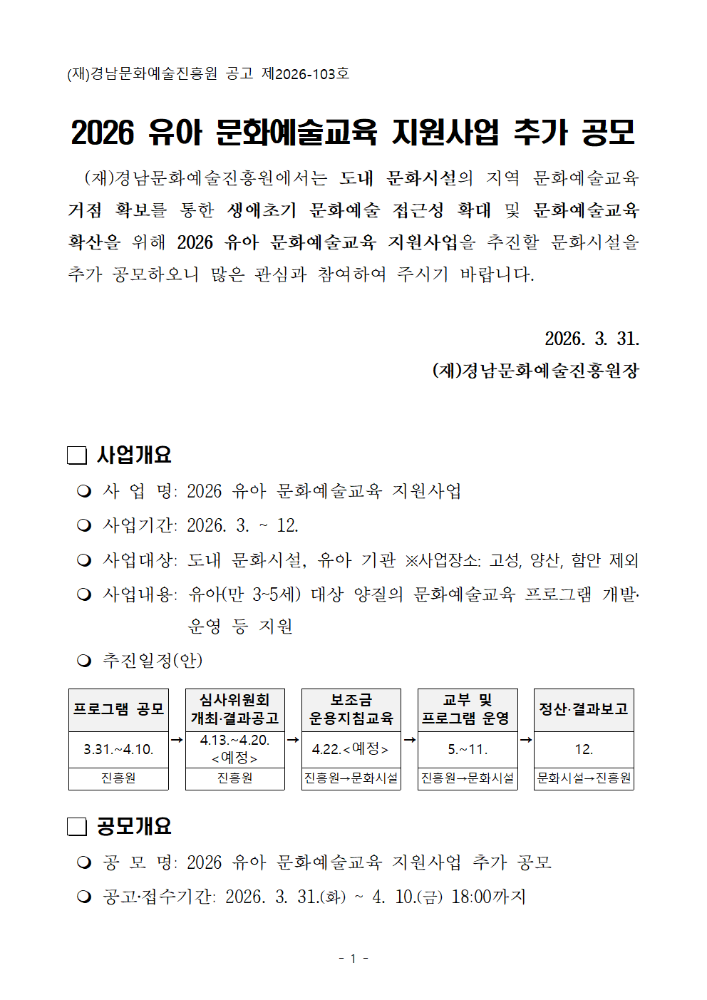 [경남문화예술진흥원] 2026 유아문화예술교육지원사업 추가 공모