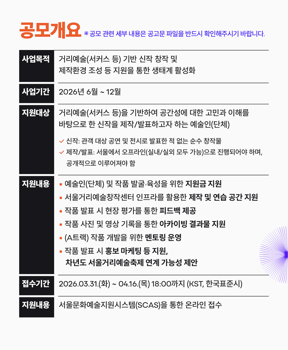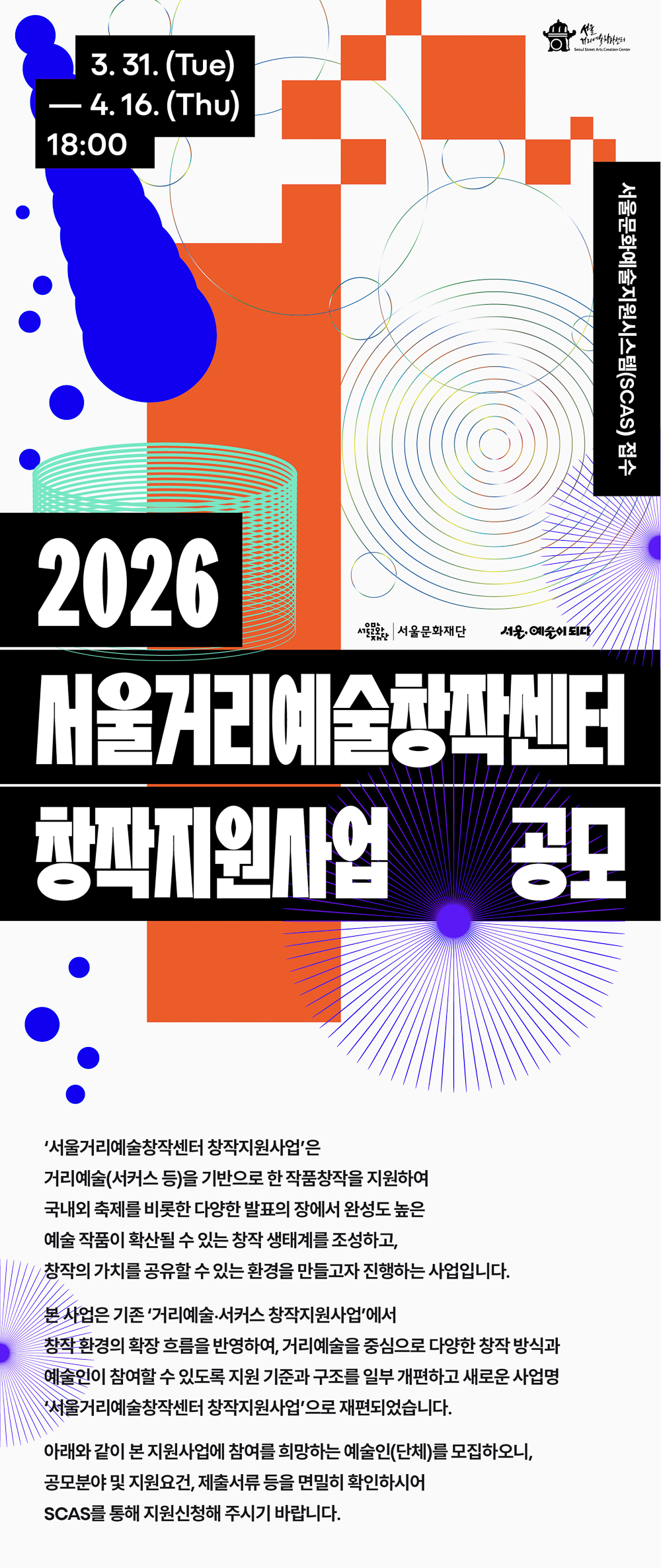 [서울문화재단] 2026 서울거리예술창작센터 창작지원사업 공모