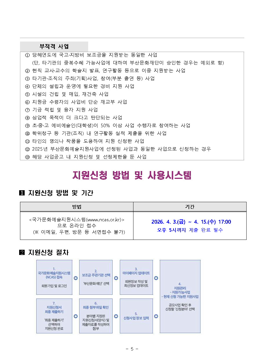 2026년도 부산문화예술지원 3.0 [2차 통합 공모] - 부산문화예술지원사업, 청년문화육성지원사업