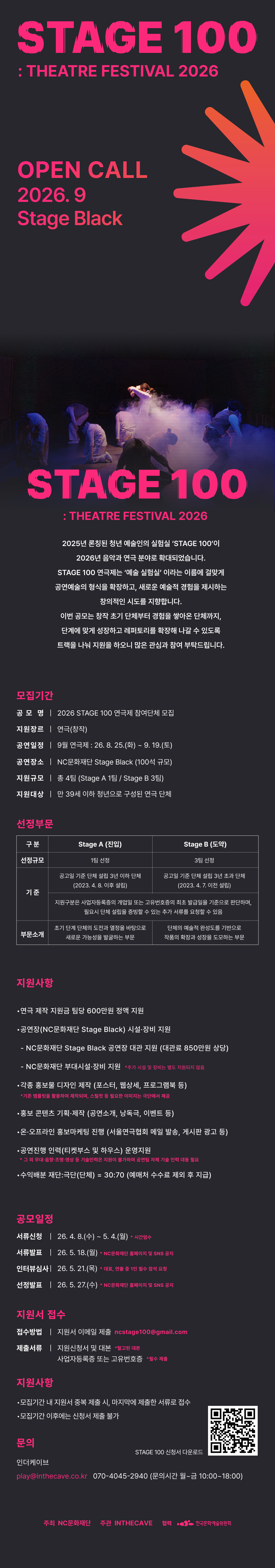 [NC문화재단] [회원등록공고] [NC문화재단] 2026 STAGE 100 연극제 참여단체 모집(대관, 홍보, 인력, 지원금 600만원 등)