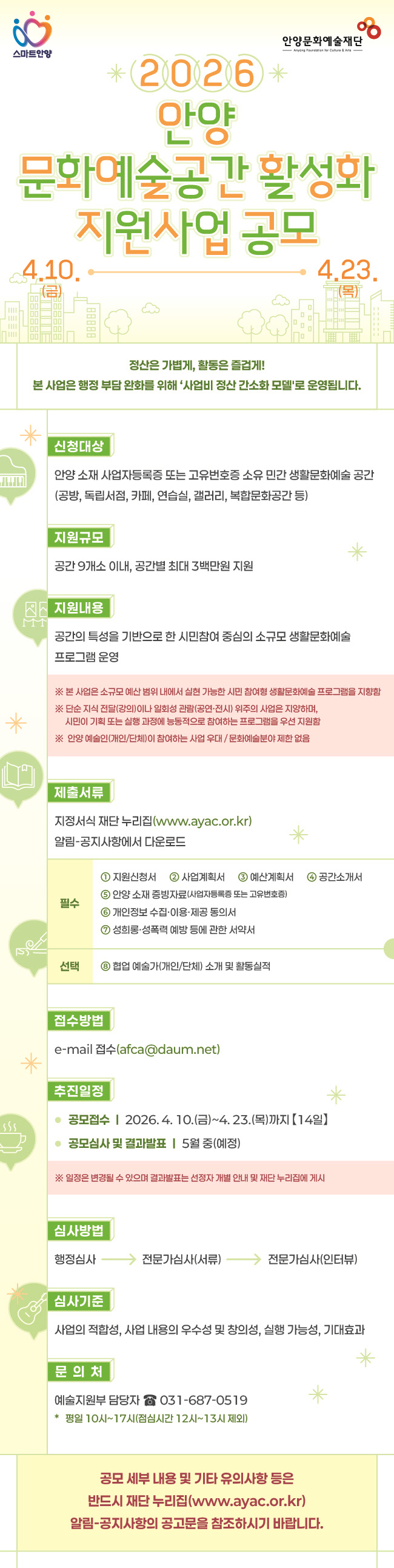 [안양문화예술재단] 2026 안양 문화예술공간 활성화 지원사업 공모
