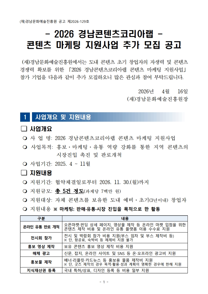 20260416103354_[공고문] 2026 경남콘텐츠코리아랩 콘텐츠 마케팅 지원사업 추가 모집.pdf