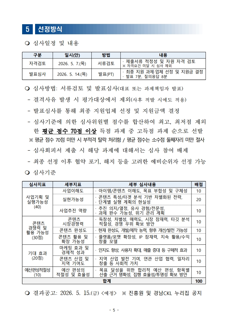 2026 경남콘텐츠기업지원센터 ⌜선도기업 육성 지원사업⌟ 모집 공고